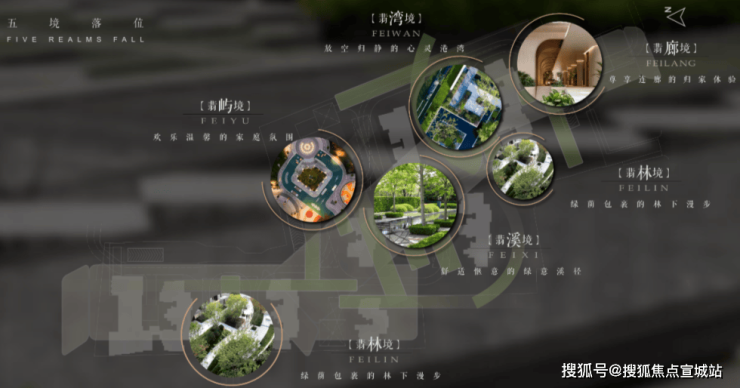 社区景观方面,由业界知名的奥雅设计操刀设计,项目规划了“翡色五境”五大空间氛围,融入时光、人文海派、自然与艺术、家庭与邻里的“四轴、三园、五区、一所”四大功能空间。