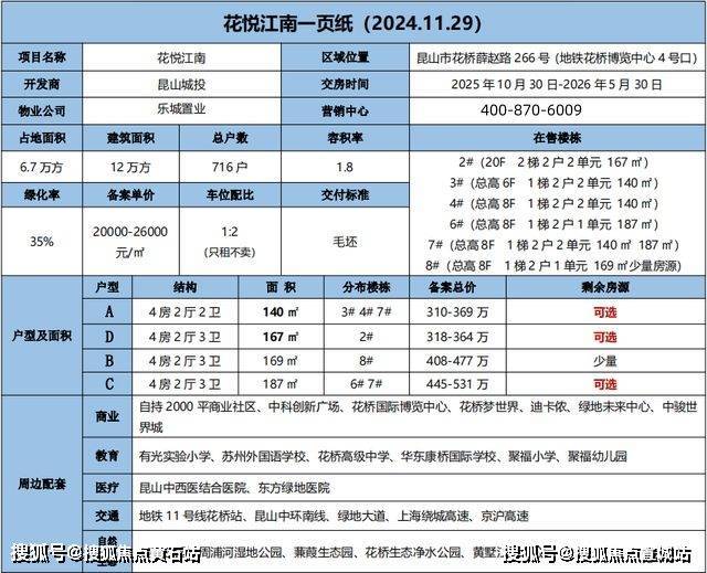 作为花桥的地标性建筑,花悦江南在规划与设计上更是下足了功夫。花悦江南总占地面积约6.7万平方米,建筑面积约12万平方米,精心规划了716户尊贵居所,其中包括15栋6-8层的多层洋房和4栋20-26层的高层住宅,错落有致地布局在这片绿意盎然之中。户型设计上,花悦江南提供了约140㎡、167㎡、169㎡、187㎡等多种面积段的选择,每一种户型都充分考虑到了现代家庭对于居住空间的需求与追求,无论是三口之家还是三代同堂,都能在这里找到最适合自己的温馨港湾。
