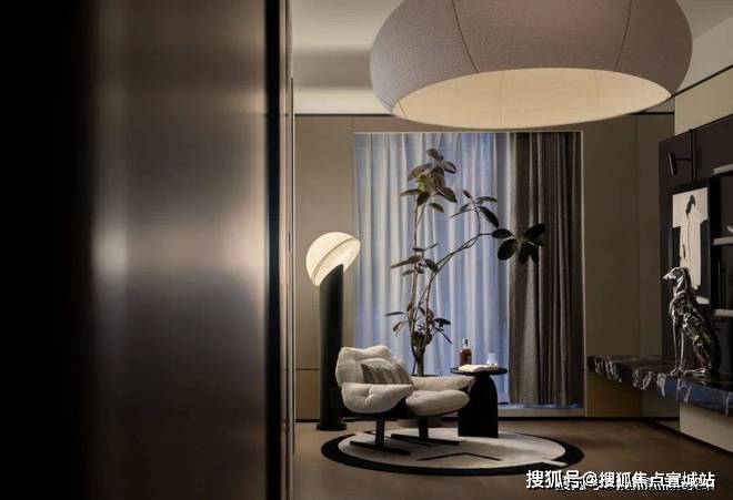 主卧以柔和的灰白色调为基底,陈设的点缀恰如其分。落地窗前,一张休闲椅与小圆几静静伫立,成为欣赏江景的美好角落。生活在此,成为一场永不落幕的风景。