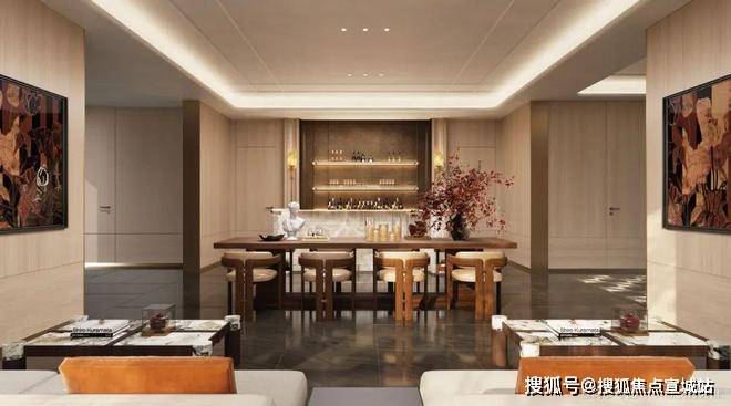 无界屏玻璃中央会客厅,270度视野无敌!未来业主可以这里品茶、会客、休闲、健身,兼顾社交场景与美学享受,满足全龄业主的品质生活所需。