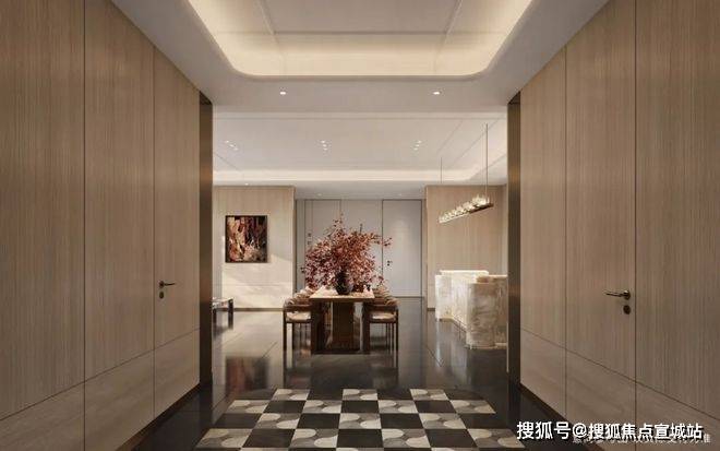 类一梯一户设计,电梯厅空间完全可以作为独立前室使用,将玄关收纳、次净衣区外置来释放室内空间。