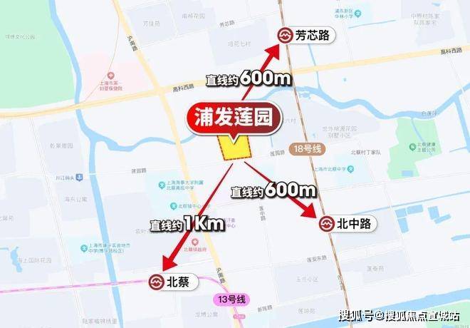 直线距离18号线北中路站、芳芯路站约550-600m,轨交可直达陆家嘴北滨江、杨浦滨江;