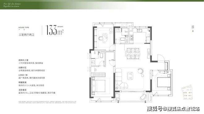 横厅非常适配当下年轻家庭,一体化“餐客厨+阳台”,这种LDKB的格局可以任由自己的想法改造,而且横厅的面宽做到了同类型产品中惊人的约5.3米,“双面宽阳台”会有很优秀的采光和尺度感,并且层高还做到了约3.1米。