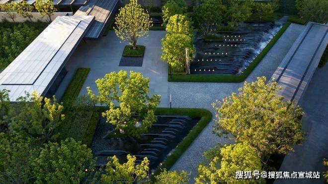并通过跌水、涌泉和镜面水景等水景组合,将内部水景与外部水岸紧密相连。