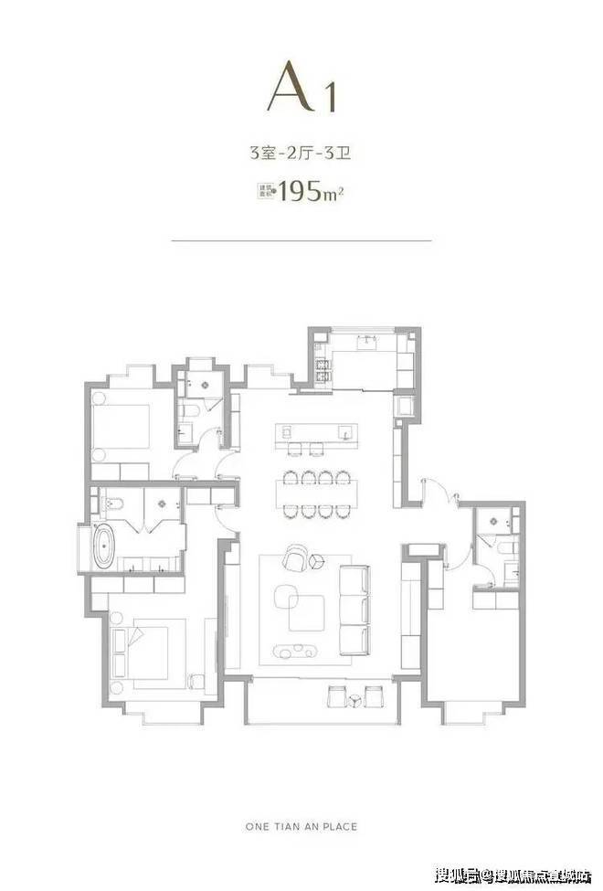不过,重中之重还是这个建面约195㎡奢阔三房户型。