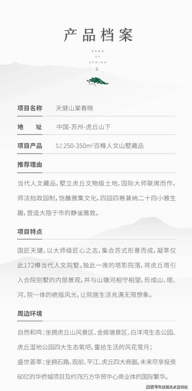 焕新地脉,是文化觉醒的必然。这是天健地产,为姑苏虎丘带来的时间与空间的对话。对话姑苏千年文脉与山水城林理想,天健以为姑苏缔造传世作品为初衷,以山棠春晓为名,匠造仅172樽人文院墅,为城市筑就百年臻藏,让姑苏重回虎丘。虎丘,不仅拥有如诗如画的风景与故事,更拥有当下繁盛、未来发展的规划与活力。
