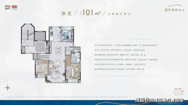 所以,虽然户型的建筑面积是约101㎡的3房,但整个空间的尺度感却能匹配改善型的宽绰3房。