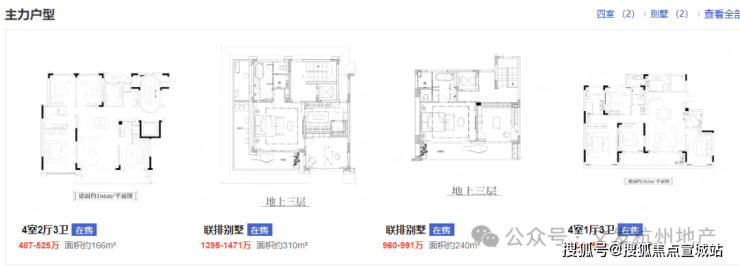 户型面积:约166/182㎡洋房;约240/310㎡排屋