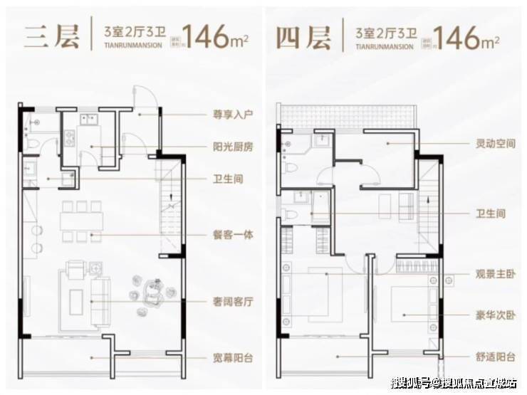 户型:主力户型为143-220㎡,下叠赠送20-60㎡院落,上叠配置电梯