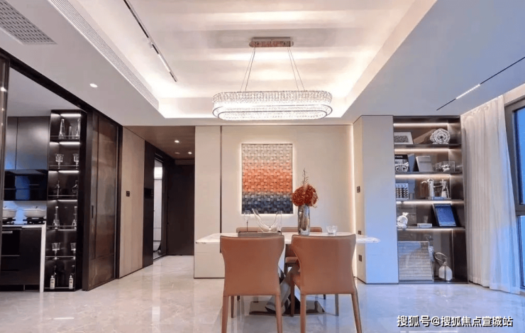 就拿餐厅而言,这个户型可以放下一个5-6人的圆桌,可以满足一大家子围坐大圆桌吃饭的需求。