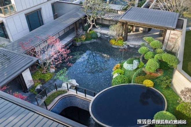 在阳光下,这处园林是变成了一幅流动的宋画,池底是游鱼的闲适,岸边是油橄榄、红枫与百年罗汉松婀娜交映。