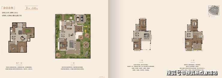 别墅户型:独栋建面约 547-646㎡,双拼建面约 383-394㎡。