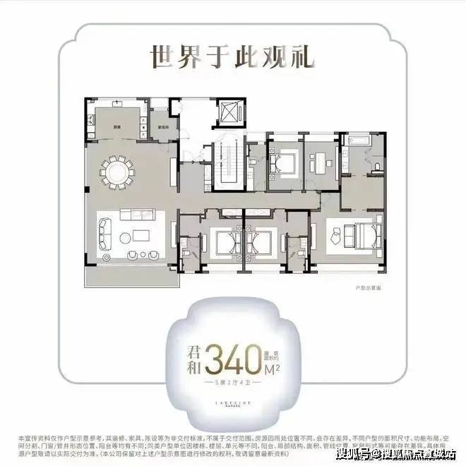 【户型设计】建面约285/300/340㎡,4房4卫/5房4卫湖景大平层产品。