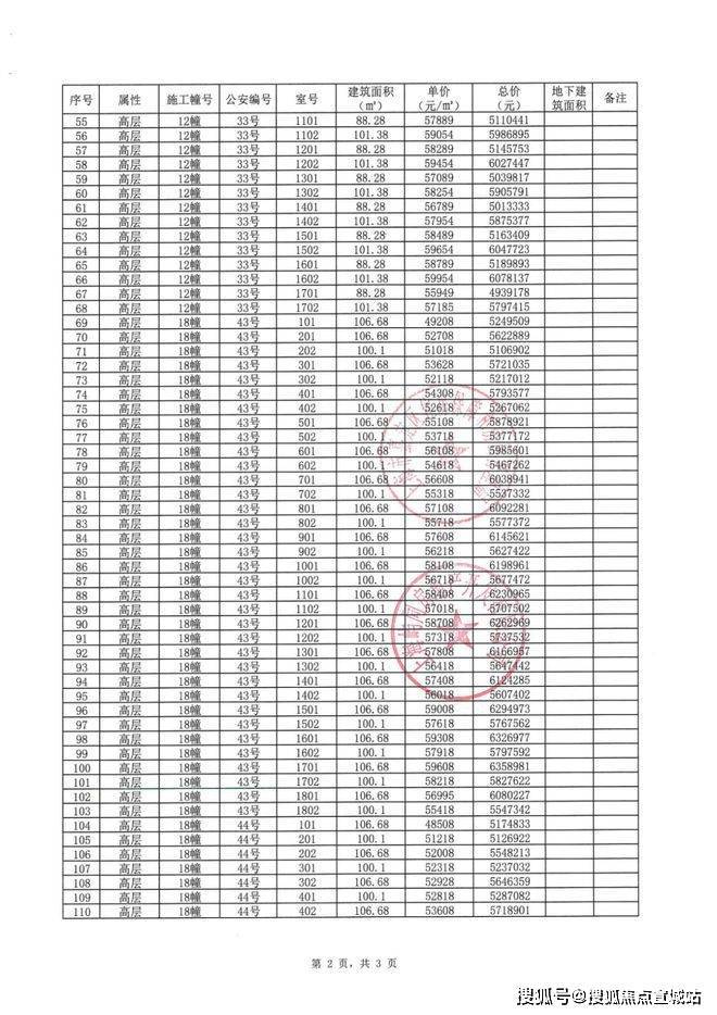 一房一价表: