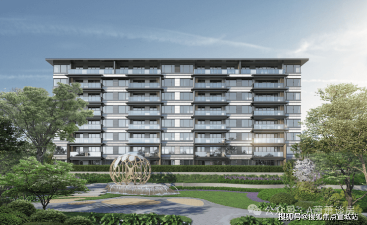 洋房的立面同样考究,采用 时尚国际建筑风格 , 以长方形为基本构成要素, 立面广泛 采用横向结构伸展 , 水平分割大面积玻璃 形成带状窗效果,使得室内更显宽敞。