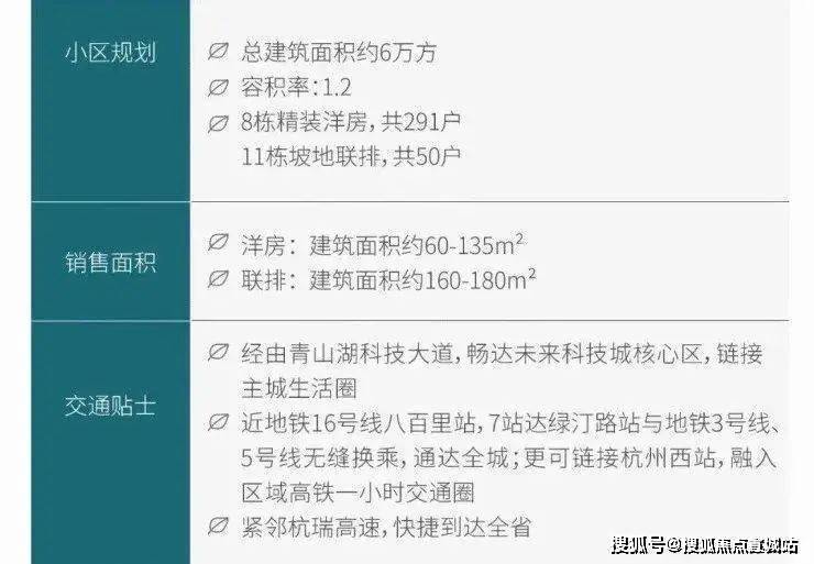 【耦贤里售楼处】:杭州青山湖板块,16号线沿线,氧生坡地墅区,楼盘由8栋7F-9F坡地洋房、11幢联排组成,在售建面约60-135㎡洋房,一至四房,精装交付,带新风、地暖、中央空调,本月特惠9折,折后参考单价10800元/㎡起;建面约160-180㎡联排,地上两层,南北双花园,本月特惠95折,折后参考总价330万起,更多优惠信息欢迎来电售楼处咨询。