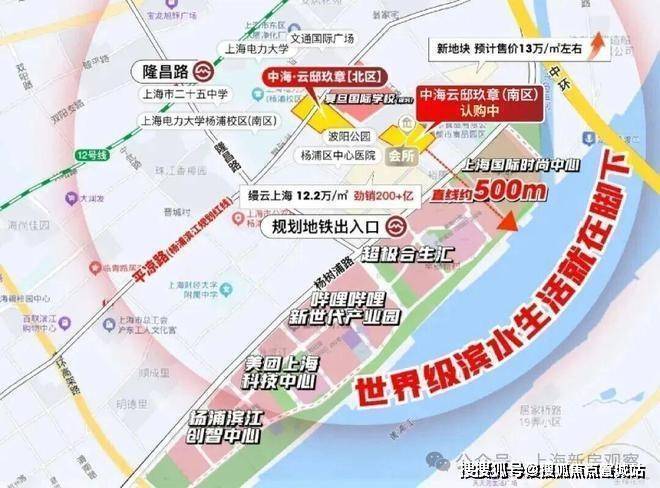 中海・云邸玖里雄踞杨浦区滨江南段核心商务区,隶属上海 “一江一河” 战略核心、“滨江 4.0” 重点规划板块,与陆家嘴、北外滩形成黄金三角,坐享城市发展的顶级红利。这里不仅是上海科创中心的重要承载地,更云集抖音、B 站、美团等巨头总部,高净值人群汇聚,圈层价值无可比拟。