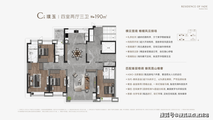 聚集北欧品牌—ASKO、德国精工传奇—当代 、德国铂浪高、骊住、日门、LD、西勒奇、西门子、赛银、圣象等一众国际一线品牌,更是全昆山首次采用三层实木地板、铸铝进户门的项目。如此逆天的配置领衔昆山精装天花板,加上品质化的细节处理,足以俘获大批买房人的心,让一众竞争对手望尘莫及!
