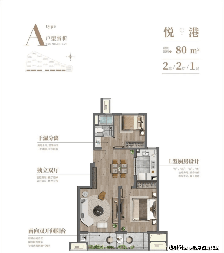 【洋房80平】7m大面宽双阳台,最前排港景海景双收眼底,得房率高,南北通透!