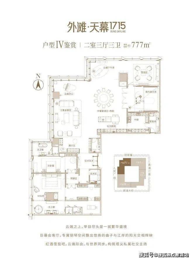 外滩天际集商务会谈、社交宴请、休憩品茗、娱乐休闲等功能融于一体,由国际奢华级酒店品牌提供物业管理服务。于此,外滩天幕1715售楼处电话:400-8851-337(预约热线☎)拓展人脉资源,执掌行业风向,发展企业野心,开拓事业版图,尊享至高礼遇,将生活与商务无缝相融。