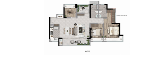 约99㎡ 3+1房2厅2卫:提供更大的居住面积,适合需要更多私人空间的家庭。