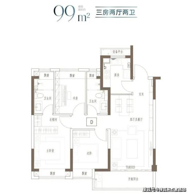 户型特点:阳光三房,同等面积更多功能;宽幅南向观景阳台,把居住变成风景;步入式衣帽间,给予生活更多从容。