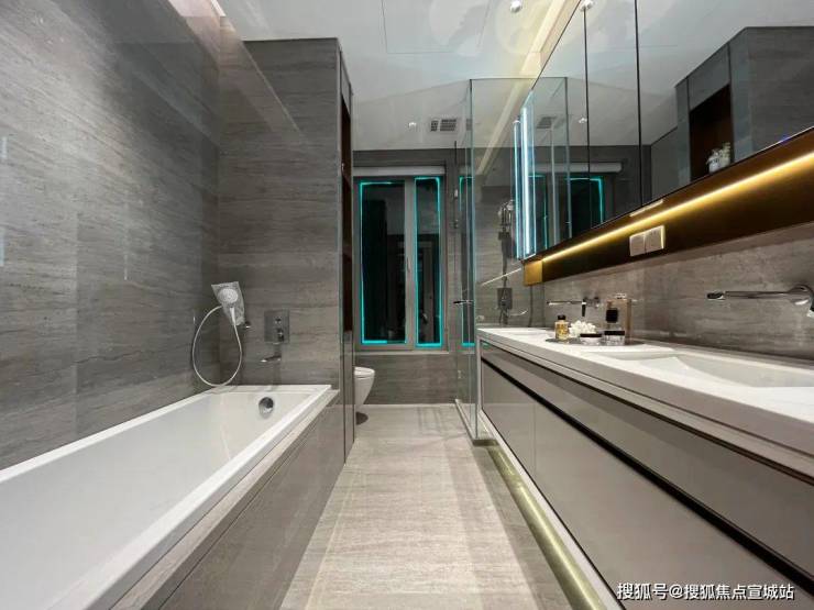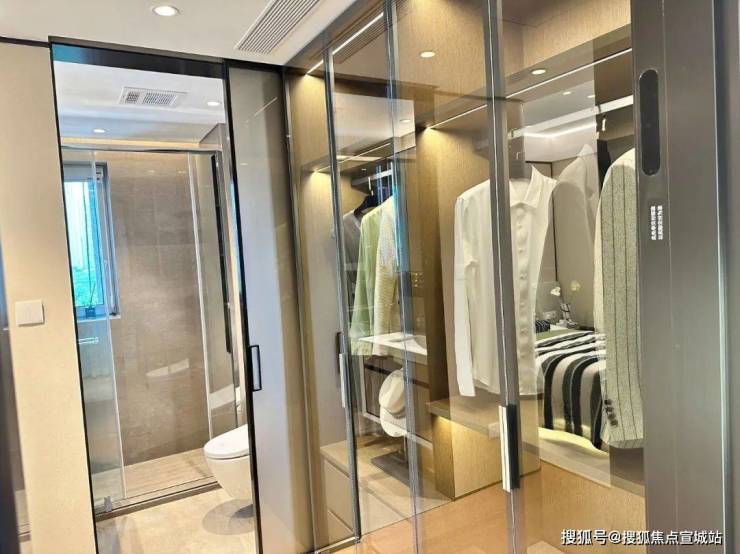 主卧套房设计,卫浴、衣帽间、主卧层层递进,卫浴还是全明设计,既有空间的尺度感,又有生活的舒适性。
