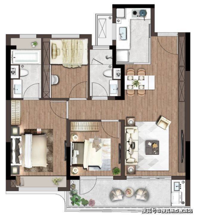 精致户型,三房两厅,功能俱全,多元宽尺空间设计,随心营造花样生活。