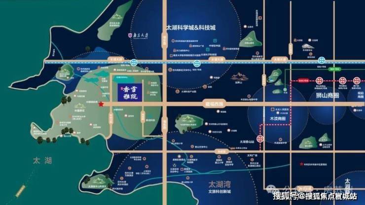 香雪雅院位于藏福西路与福锦路交汇处西北侧,北接科技城,身处风景区,北侧毗邻片区核心苏州科技城,距离太湖国家旅游度假区仅5公里之遥,旨在建设光福镇高品质人文住区。