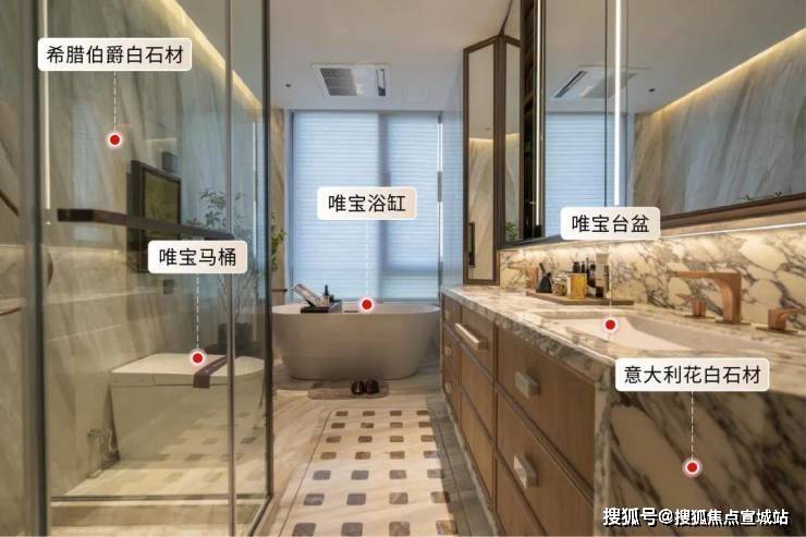现在做高端改善住宅的开发商都在卷石材,明庐更是卷到天际,含“奢材量”极高。