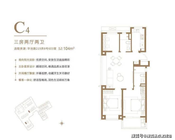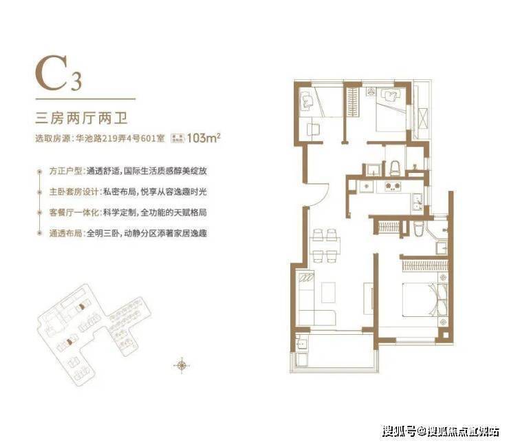 户型设计灵动,目前开放了104㎡3房2厅2卫和103㎡3房2厅2卫样板间,可谓是各有看点:
