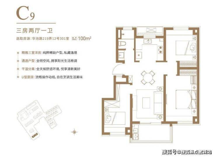 U型厨房的设计、干湿分离的卫浴、套房式的主卧等等。