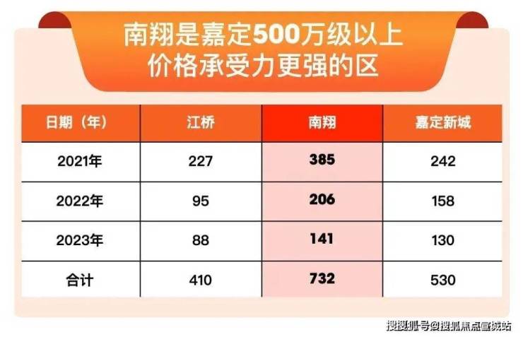 500万以上二手房,南翔成交套数远高于江桥、嘉定新城,说明南翔高端购买力更足,500万级买在南翔更好!