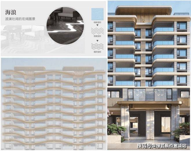 小高层以高技手法实现海浪起伏般的曲线转角,形成具有现代质感的美学天际线。在灯光映衬下,建筑宛如海浪般生动。大面积的玻璃飘墙与透明栏杆设计,增强了小区的透明度和开放感,让自然光线充分涌入室内。