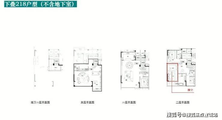 叠加218/236/258㎡,得房率超90%,客厅挑空,上叠送露台,下叠送院子;