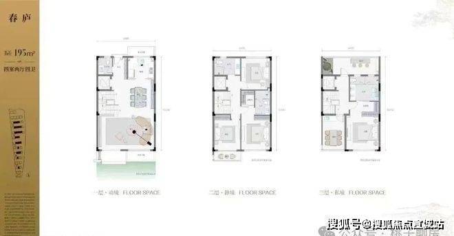 建面约195方的城市排屋,整体4室2厅4卫,地下2层地上3层,南北双花园设计.此外还有独家私密花园和南向超大会客厅.2层是双套房设计,并且南向带有独享露台.3层行政套房设计,并带有南北双露台.