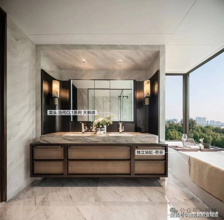 ·全系双套三卫横厅:全系双套房,主卫功能5件套(双台盆),6m-7.1m超宽巨幕横厅