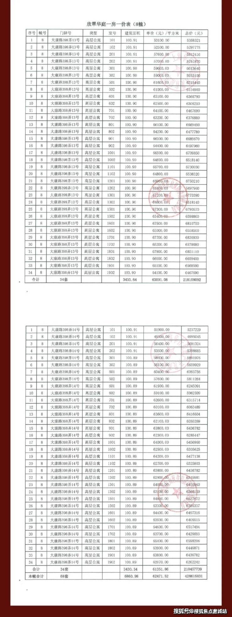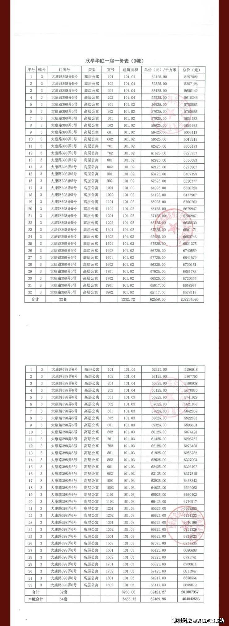 大华公园柏翠项目一房一价表▼