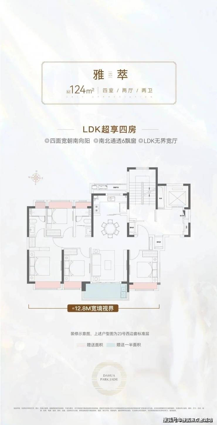 建面约124㎡的4房2卫户型,通常来说是紧凑型的户型。