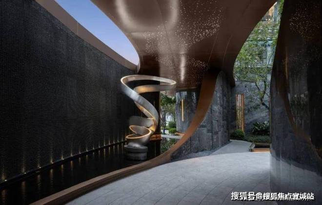 东、北主入口采用星级酒店式门仪,三进式空间结合星空顶、艺术装饰及内庭水景,强化归家仪式感