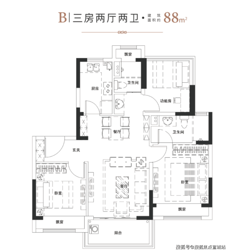 纯毛坯交付,无隐形溢价:无地砖、无墙漆、无吊顶、无厨卫设备,开发商不设“统一精装”,业主可按家庭需求自由设计,得房率高达80%–83%,88㎡户型实际使用面积媲美普通小区95㎡高层。