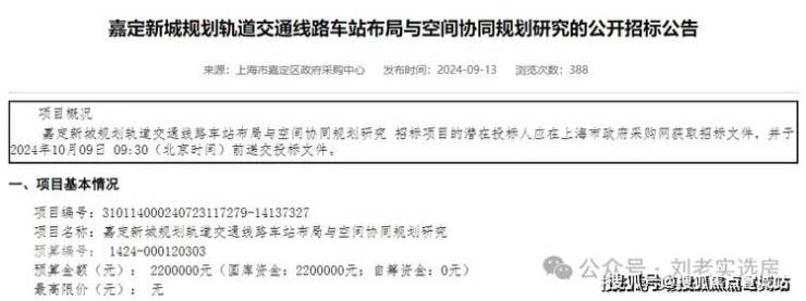 去年9月13日,上海政府采购网发布《嘉定新城规划轨道交通线路车站布局与空间协同规划研究的公开招标公告》。