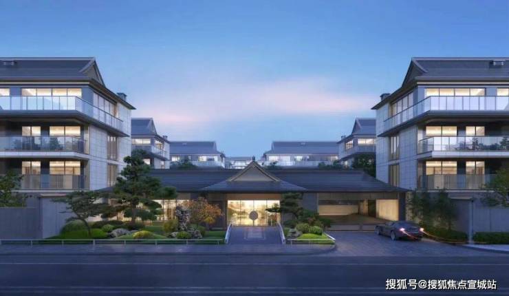 颂香望庐的建筑外立面沿袭传统宋式美学,采用四面铝板+三玻两腔玻璃立面,搭配爱马仕灰和蓝眼睛石材,古典但不失现代质感。
