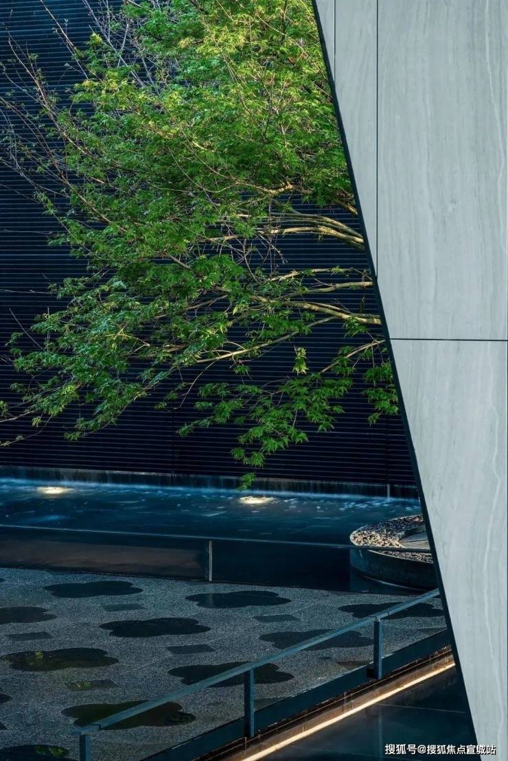 尽头处约12m的宽景水幕,青枫与池水交相辉映,巧妙利用铺地拼花划分不同院落空间,归家内庭的万字海棠纹铺地更是参考了留园的海棠纹铺地,寓意富贵吉祥,还原苏州风雅质感,隐奢内敛。