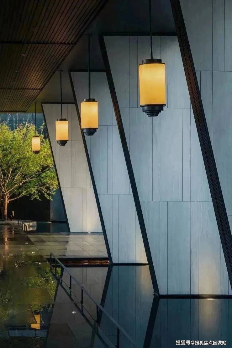 约40米临水回廊与入口相连,序列感的景墙搭配精致典雅的宫灯,感受归家第一面的尊贵与舒适,踏水而归晴雨皆从容。