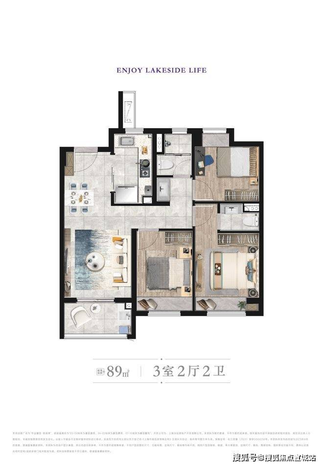 户型上,建面约89㎡做到了罕见“3房1.5卫”,能保证小家庭很长时间都不用换房。同时三开间朝南、三卧飘窗、次卫干湿分离、主卧套房都是标配,实用性高。