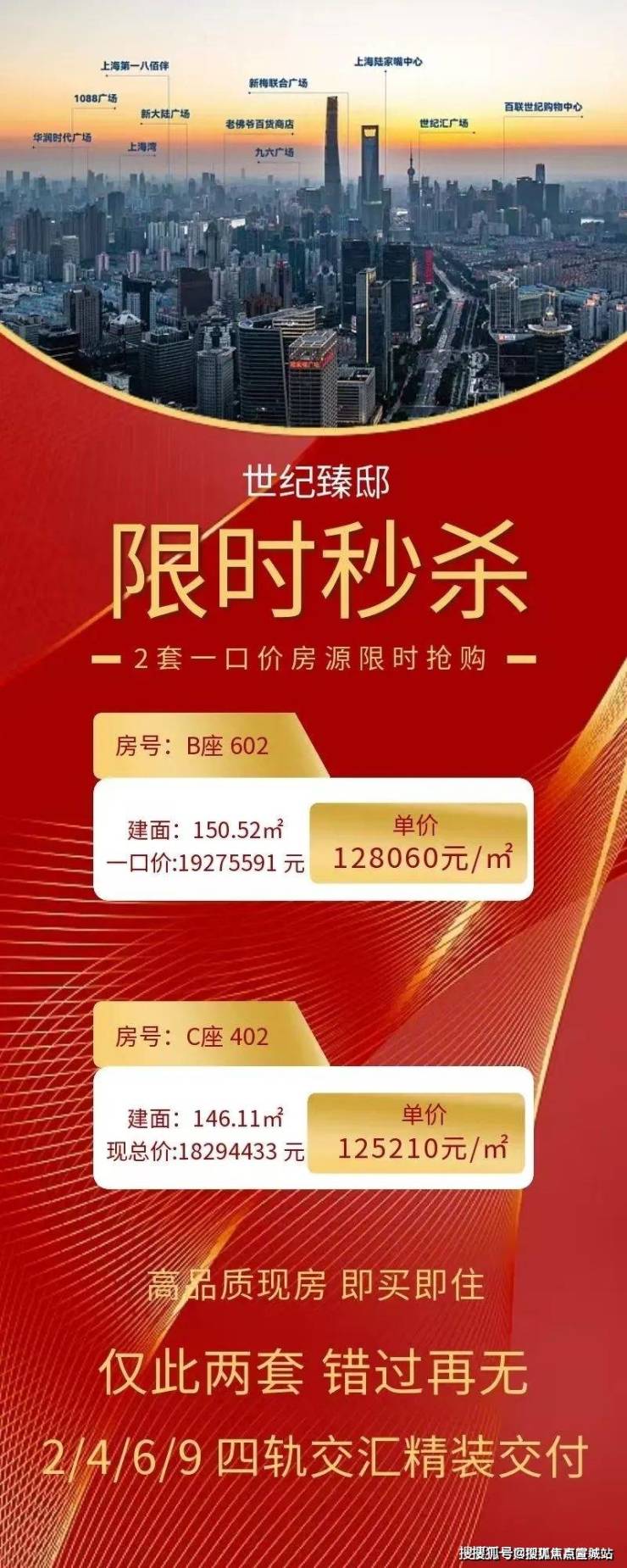 陆家嘴太古源!目前售罄第一批次:2024年12月15日1.2号楼50套均价:16.9万/平米触发积分五年限售,世纪臻邸价格才12.5万/平,还有95折优惠+送车位真是在陆家嘴地区打着灯笼也找不到了!