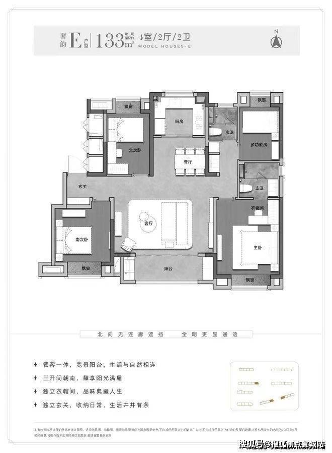 尊重隐私,人性卧室化布局:南向主卧和次卧分布在客厅两侧,保证了居者私密性;“主卧的空间尺度”决定着我们的生活。主卧是主人居住的私密空间,是整套住宅的核心。带飘窗主卧,景观视野好,明卧阳光清风也充分考量居住者的健康。