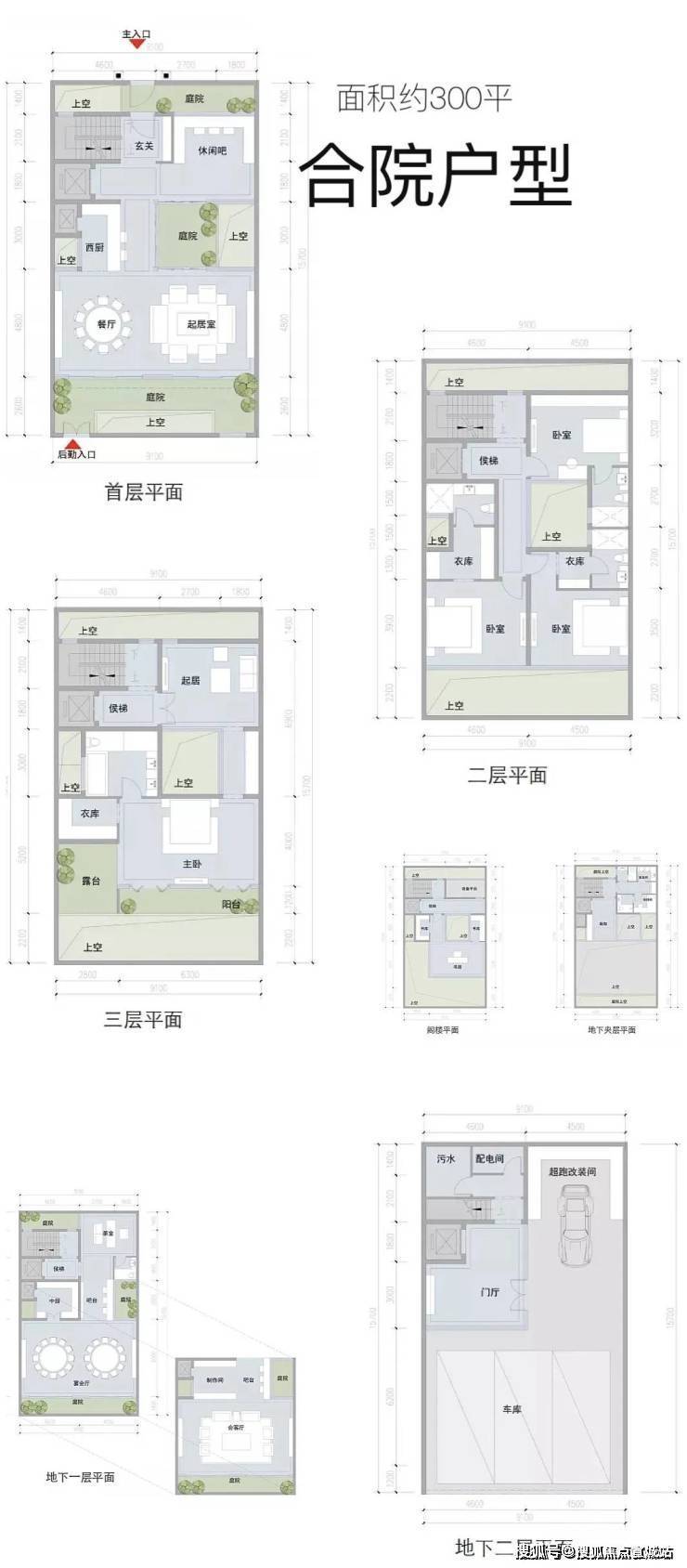 风貌联排合院:151套(建面约250-1200㎡,主力户型约300-500㎡)