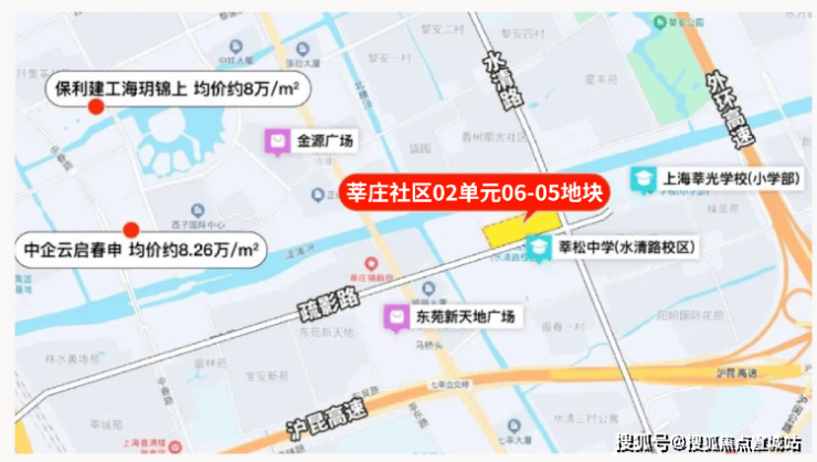 地块周边有莘松中学水清路校区和莘光学校,其中,莘松中学水清路校区就在该地块对面,这两所学校都是闵行区传统的公办名校,均建校超过30年。